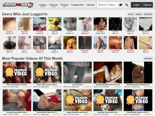 The menu bar offers several alternatives when it comes to the content – videos, albums, photos, categories, and upload. This is all we really need! When you start exploring UploadYourPorn you will see they have more than 22500 videos. They have over 2000 albums and almost 6000 photos. This is quite a lot to see, don’t you think? We were very happy to check out all these sections, especially after we saw how much material they had. Below all this, you can see users who just logged in, and scrolling down will give you more options, like checking out the most popular videos of this month.