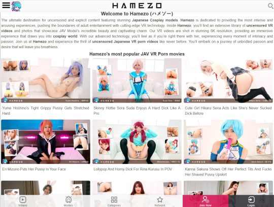 The models here focus their attention on you by looking straight at the camera as they pleasure or get their holes pleasured. All while wearing some colorful hair and donning an interesting costume. It almost feels like you can reach out and get a feel of it through your screen. So yeah, if you’ve ever fantasized about getting up close and personal with your favorite anime or game characters in a way you never thought possible, keep reading. Hamezo is about to make those dreams a vivid reality.