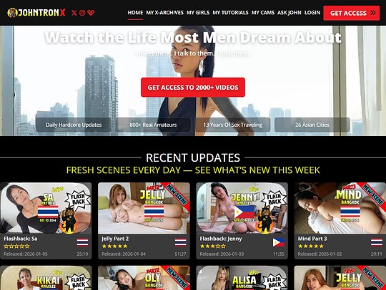 For all the lovers of amateur porn scenes and those with an appetite for hot Asian babes, the name JohnTronX might seem familiar. John, an expert pussy hunter, travels the world, from Asian countries to Europe and the United States, picking up Asian girls and taking them back to his hotel room for sex. Known as the “mongergod” of Asian porn videos, he has spent over a decade traveling, filming his experiences, and sharing his stories with a solid fanbase. The site has a documentary/diary vibe, with clips filmed from his POV, and there are several interviews with them. If you’ve always wanted to tour the world in quest of the hottest and horniest Asian chicks, get ready to be amazed. ... read more