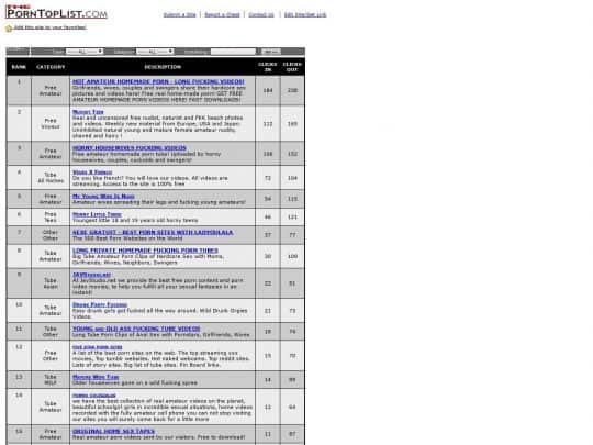 But you know how those big platforms are usually very difficult to navigate? They are confusing and you can’t find what you want immediately. This is not the case with ThePornToplist, since it is a very small and modest site. You only have this main page, and here you have all the 69 links you need. You have rank, category, description, clicks in and out. And that’s it. That’s literally it, there’s nothing else here to talk about. But considering I am a very chatty fella, I will tell you more about their site suggestions.